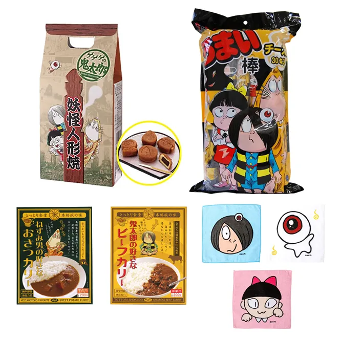 (ゲゲゲの鬼太郎うまい棒 チーズ味 30本入り/ミニタオル 各種/妖怪人形焼/鬼太郎の好きなビーフカリー/ねずみ男の好きなおさつカリー)
